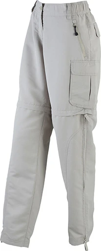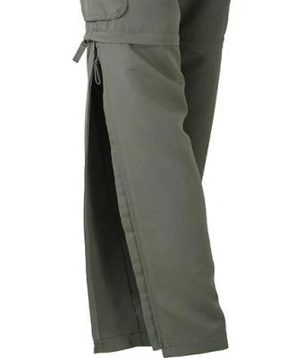 Vertical side zippers allow leg sections to be slipped off easily over footwear