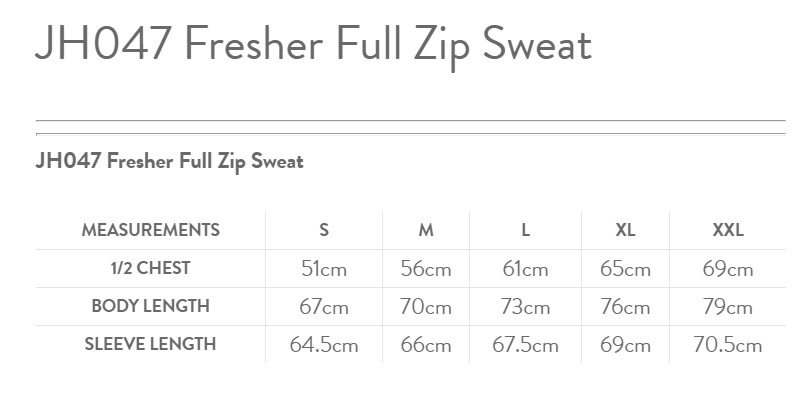 JH047 Fresher Full Zip Sweat