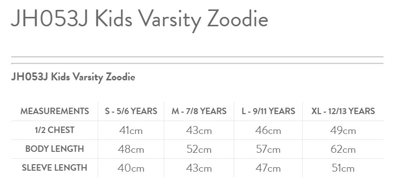JH053J Kids Varsity Zoodie