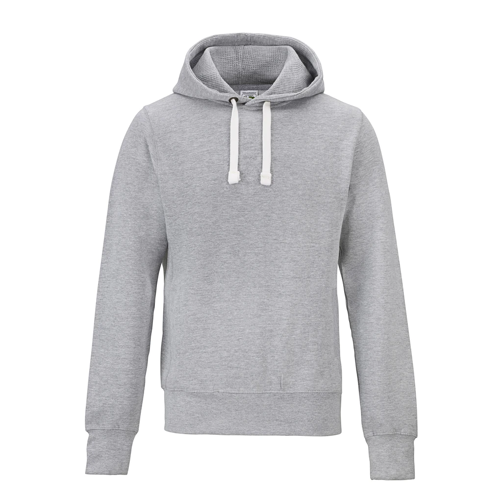 Double fabric hood with heather grey waffle fabric inner