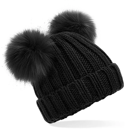 TearAway label for ease of rebranding, sumptuous heavy ribbed knit, luxury faux fur pom poms, non-removable pom poms for added safety, cuffed design for optimal decoration