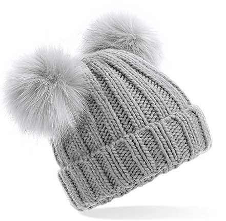 TearAway label for ease of rebranding, sumptuous heavy ribbed knit, luxury faux fur pom poms, non-removable pom poms for added safety, cuffed design for optimal decoration