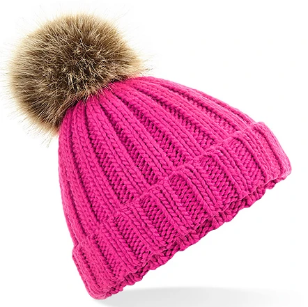 TearAway label for ease of rebranding, sumptuous heavy ribbed knit, luxury faux fur pom pom,