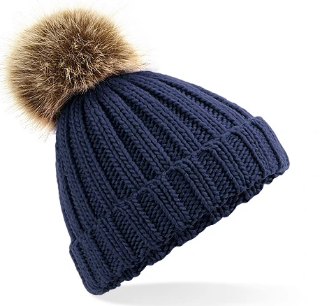 TearAway label for ease of rebranding, sumptuous heavy ribbed knit, luxury faux fur pom pom,