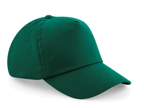 5 panel design, pre-curved peak, stitched ventilation eyelets, child safe secure button,