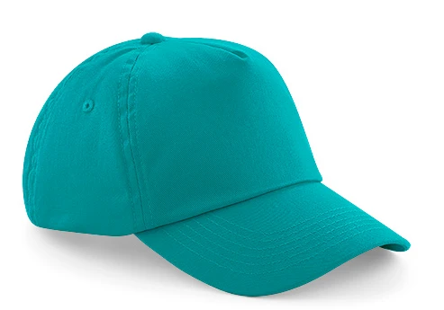 5 panel design, pre-curved peak, stitched ventilation eyelets, child safe secure button,