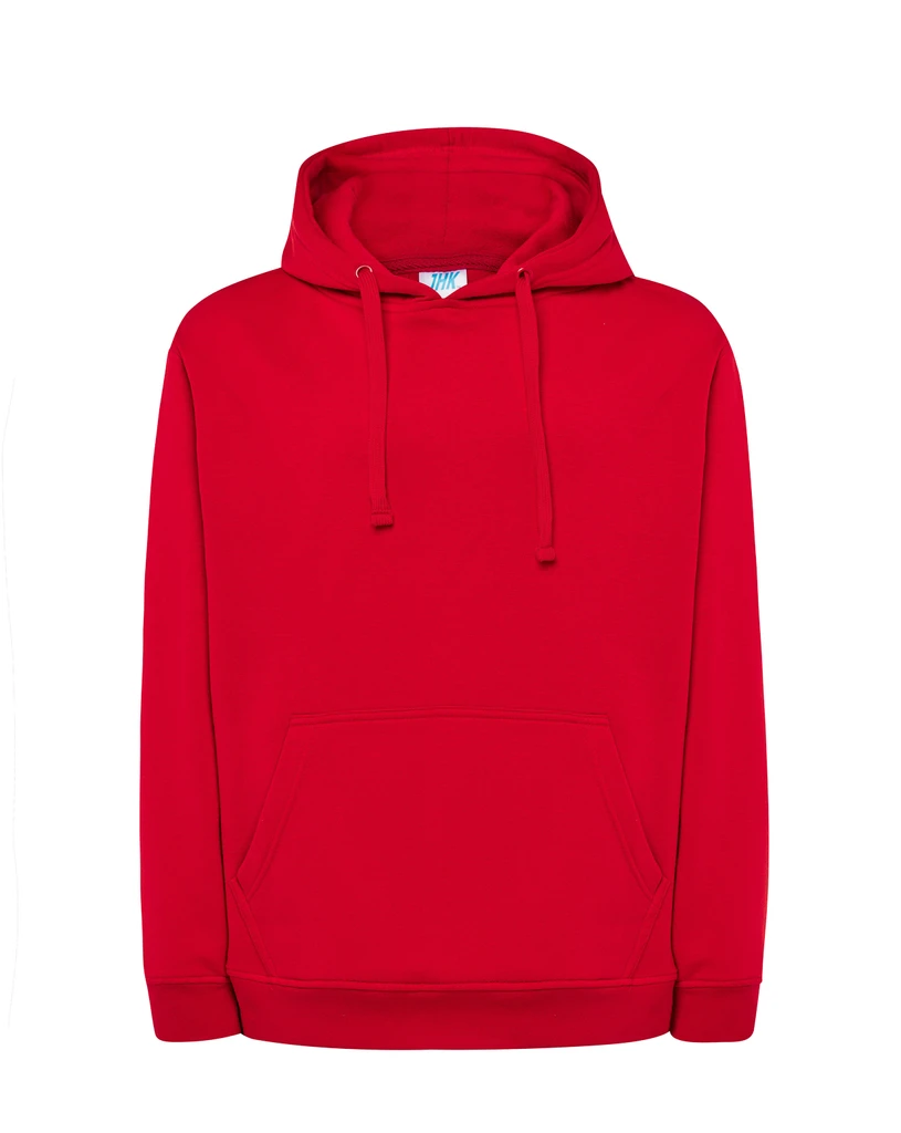 Hooded sweatshirt for men with kangaroo pocket and matching drawstring. Available in 29 colors and from size XS to 3 XL. Because of its higher polyester composition, some of our customers use the white sweatshirt to sublimate.