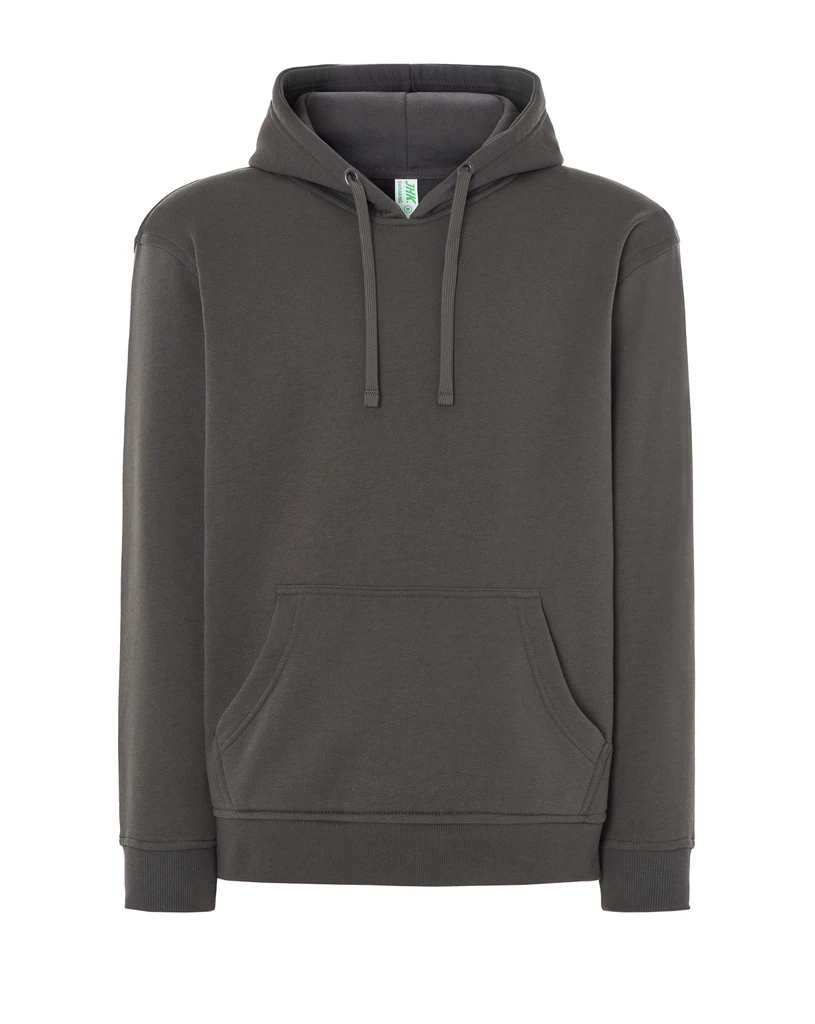 Hooded sweater. Matched colour drawcord. Kangaroo pocket. 1x1 Rib with lycra in cuffs and waistband.