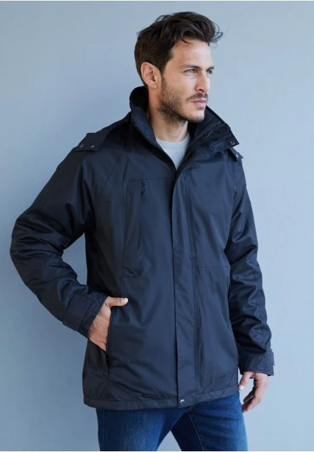 100 % Polyester outer with PVC coating, waterproof taped seams. Jacket: 100% polyester outer with pVc coating. Waterproof taped seams. 100 % polyester mesh lining for body & 100 % polyester sleeve lining. Detachable mesh lined hood with stud closing & toggles. Outdoor fleece lined collar. Full zip with studded storm flap. 4 front zip pockets with flap. Cuff adjusters with tear release fastening. Zip access for decoration. Outdoor Fleece Jacket: 100 % polyester micro fleece. 100% polyester sleeve lining for easy arm slip-in. Full length zip. 2 side pockets. Zip-in Zip-out system to attach to outer parka jacket.
