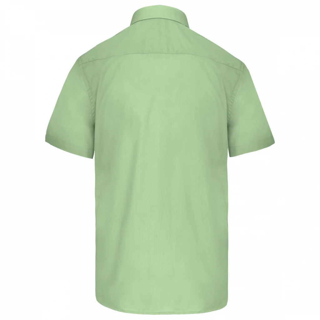 65 % Polyester 35 % Cotton Poplin. Easy Care fabric. Cut-away boned collar. Cross stitched self coloured buttons. Left chest pocket. Back yoke. Double folded seams. 1 spare button.