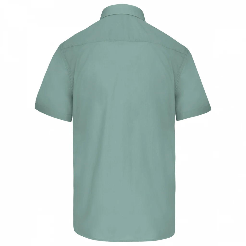 65 % Polyester 35 % Cotton Poplin. Easy Care fabric. Cut-away boned collar. Cross stitched self coloured buttons. Left chest pocket. Back yoke. Double folded seams. 1 spare button.