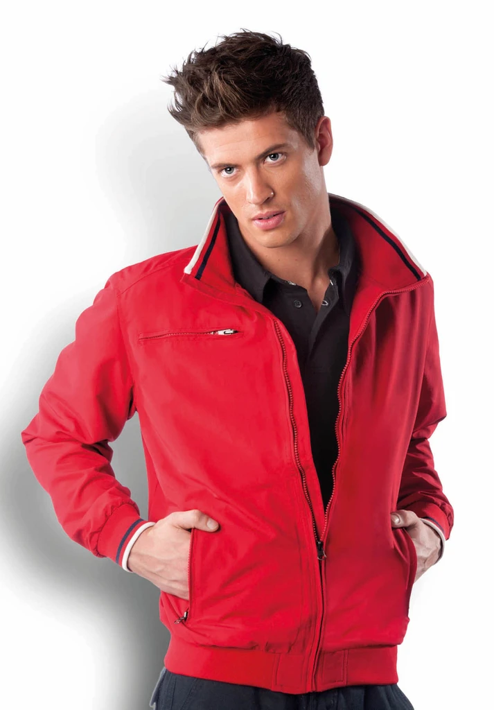 100 % Polyamide Taslon Ottoman - 100 % Polyester mesh lining - Strong matt fabric - 2 front zipped pockets - 1 chest zipped pocket - 1 inner pocket - Ribbed inner collar with contrast stripes - Mesh lining with zip access for decoration - Ribbed bottom hem - Ribbed cuff hems with contrast stripes.