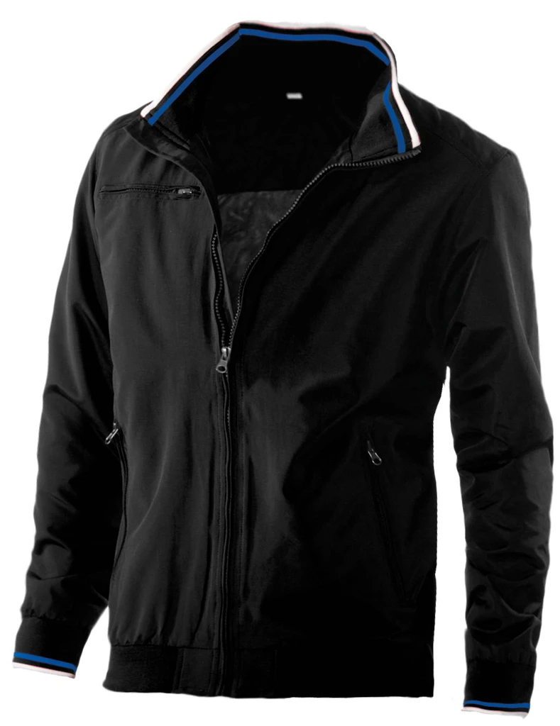 100 % Polyamide Taslon Ottoman - 100 % Polyester mesh lining - Strong matt fabric - 2 front zipped pockets - 1 chest zipped pocket - 1 inner pocket - Ribbed inner collar with contrast stripes - Mesh lining with zip access for decoration - Ribbed bottom hem - Ribbed cuff hems with contrast stripes.