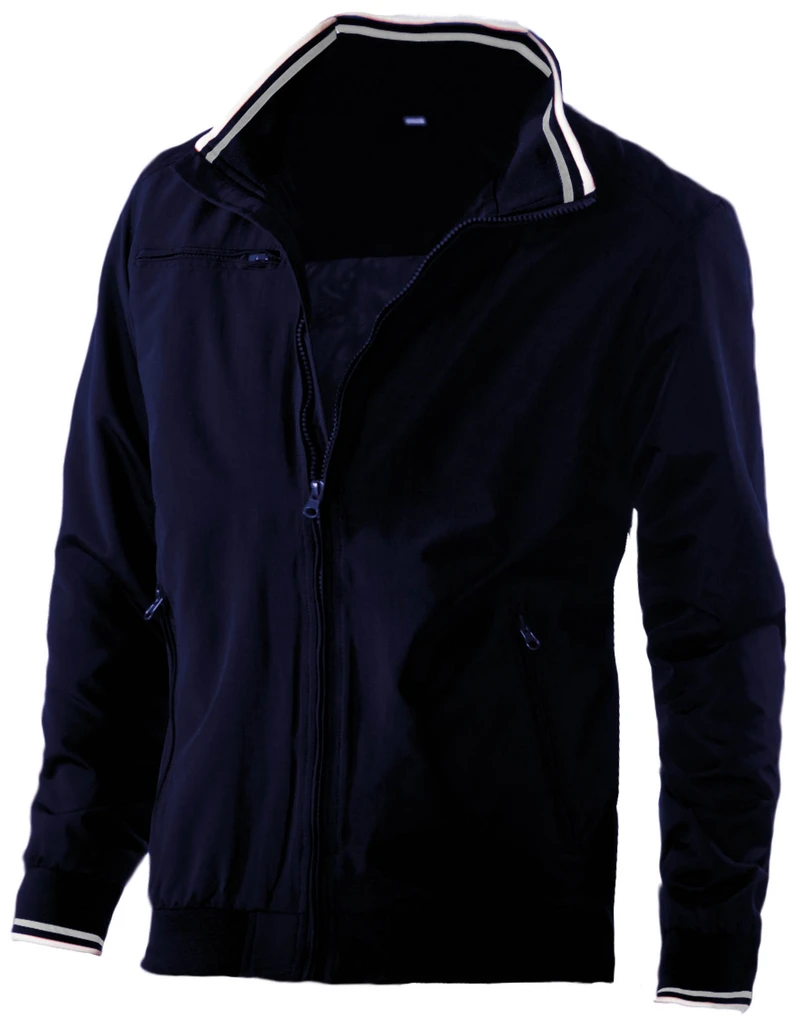 100 % Polyamide Taslon Ottoman - 100 % Polyester mesh lining - Strong matt fabric - 2 front zipped pockets - 1 chest zipped pocket - 1 inner pocket - Ribbed inner collar with contrast stripes - Mesh lining with zip access for decoration - Ribbed bottom hem - Ribbed cuff hems with contrast stripes.