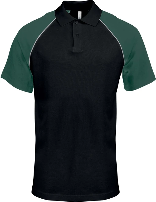 100 % Cotton Piqué. Knitted collar with taped neck. Contrast raglan sleeves with Grey or Taupe contrast piping at armholes. 2 matching button placket. Twin needle finishing.