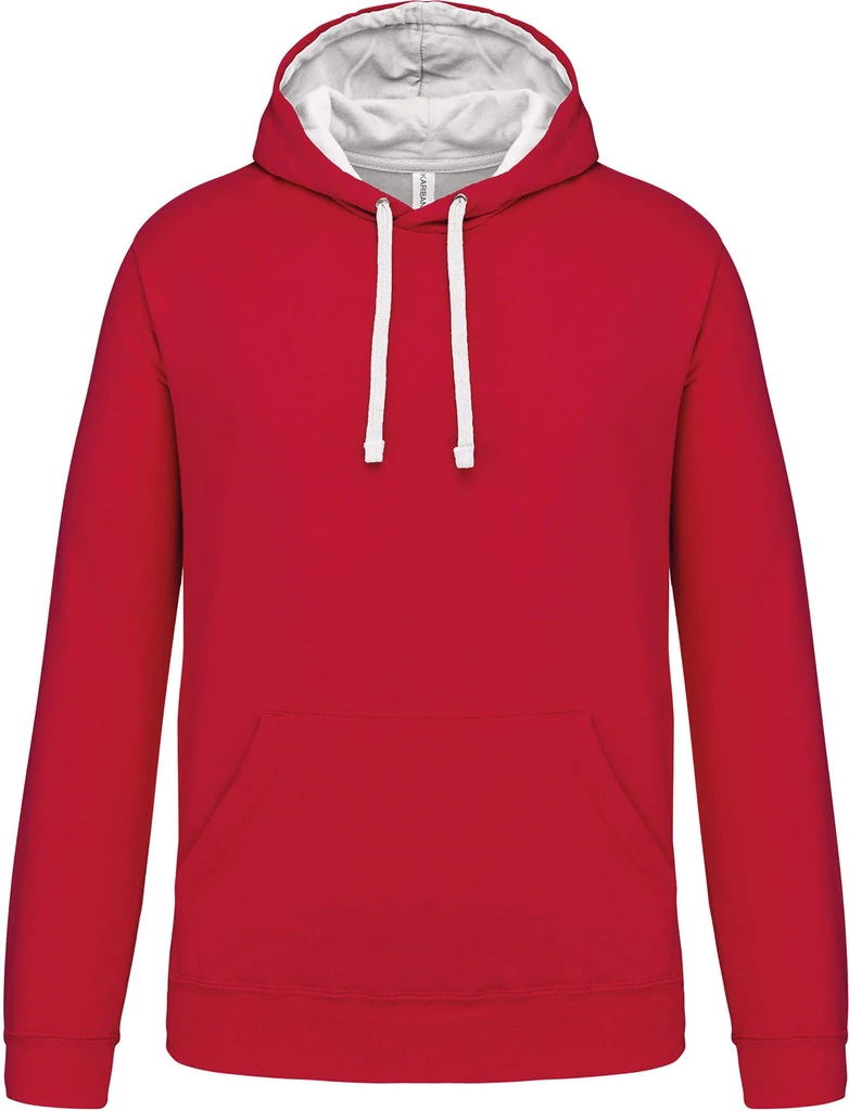 80% combed cotton / 20% polyester. Brushed fleece. Kangaroo pocket with earphones access. Ribbed cuffs and waistband. Contrast lined hood with drawcord.
