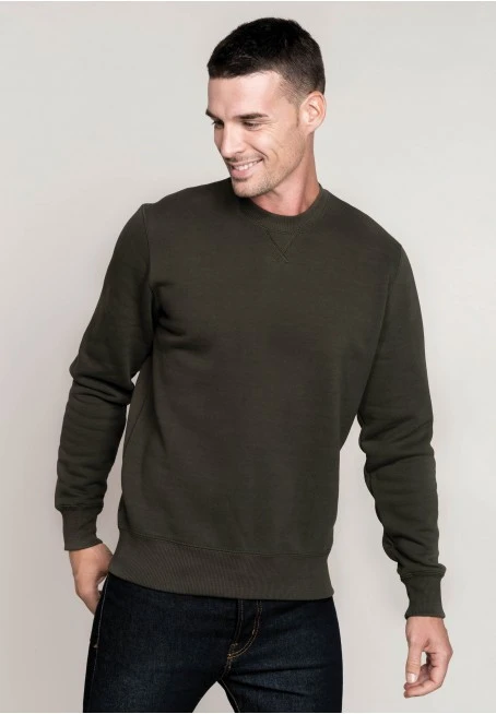 80 % Ringspun Cotton 20 % Polyester. Low shrinkage brushed fleece. Silicone wash. Contrast reinforced neck tape. Set-in sleeves. Ribbed neck, cuffs and waistband.
