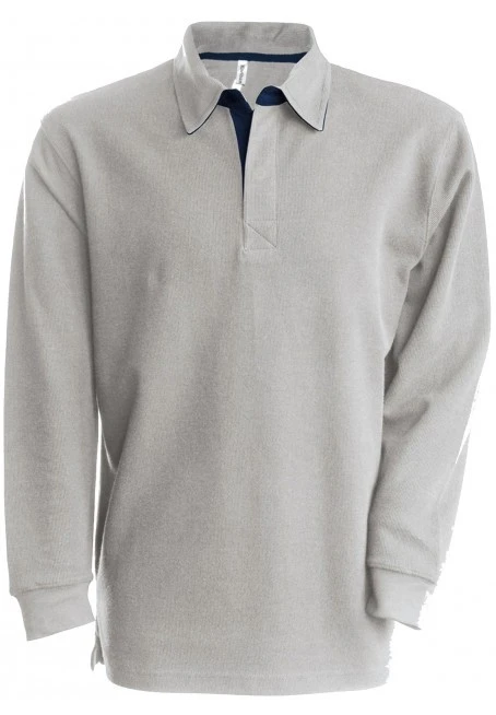 100 % Cotton rib (85 % cotton 15 % viscose for Grey). Contrast chevron taped neck and side vents. Concealed 3-button placket. Contrast collar reverse and inner placket. Locker patch. Cuffed sleeves. Twin needle finishing.