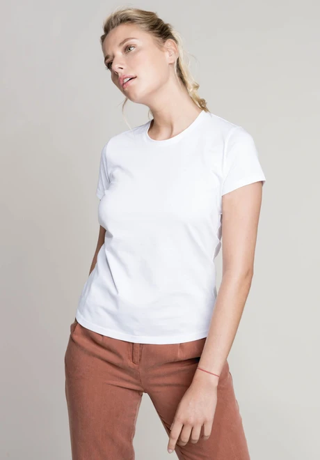 100 % Cotton enzyme washed for extra soft hand feel (Oxford Grey : 90% Cotton / 10% Viscose). Feminime fit. Self fabric neckline. Heather grey contrast taped neck for all colours, except for white body where tape neck is white and oxford grey body where tape neck is dark grey. Twin needle finishing.