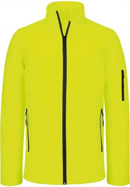 Softshell 3 layer bonded fabric. Breathable up to 3000 gr/m2/24h & water resistant up to 8000 mm. 95% Polyester 5% Elastane outer layer, performance membrane mid layer & micro fleece thermal inner layer. Zip through front. 2 zip closing side pockets. 1 zip closing left sleeve pocket.