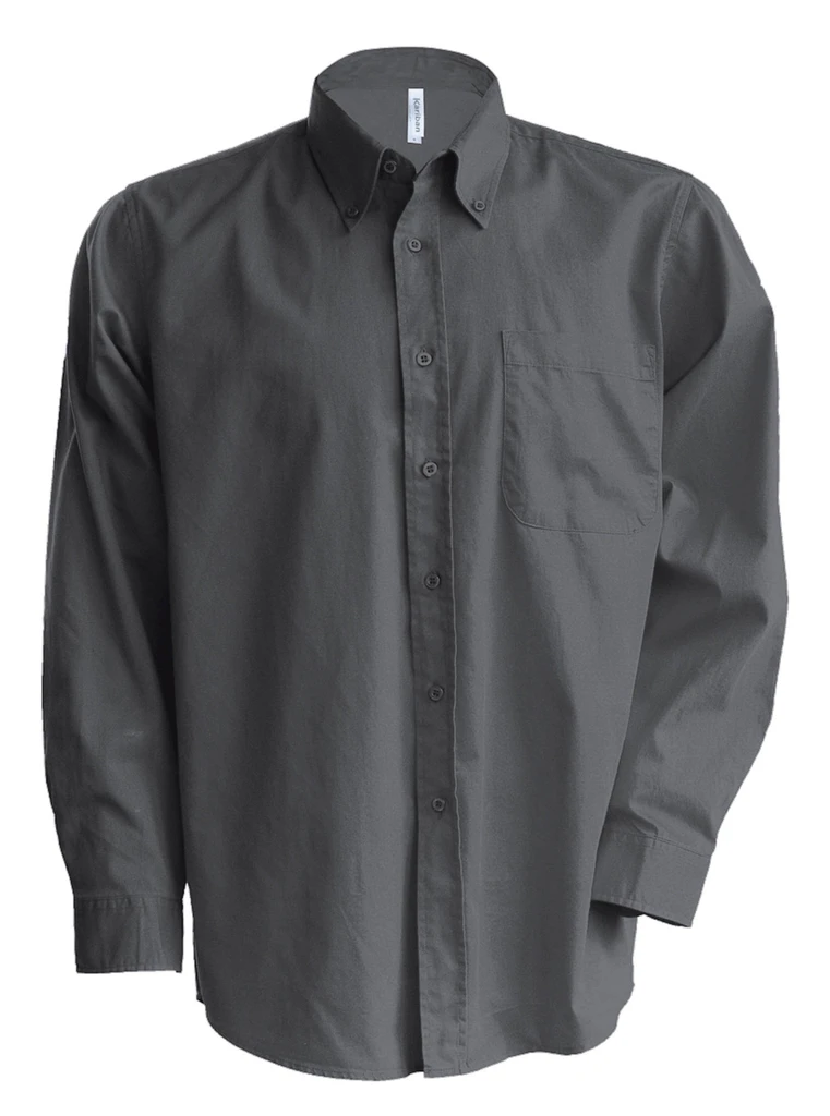 70% Cotton / 30% Polyester. Easy Care fabric. Button down collar Cross stitched self coloured buttons. Left chest pocket. Back yoke with 2 side pleats. Adjustable cuff plus button on cuff gauntlet. 2 spare buttons. Shaped hem.