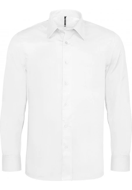 97% Cotton / 3% Elastane. Fitted style. Single button semi cut-awauy boned collar Cross stitched self coloured buttons. Back yoke with darts. Double folded seams. Two buttons cuff plus button on cuff gauntlet. 2 spare buttons. Shaped hem.