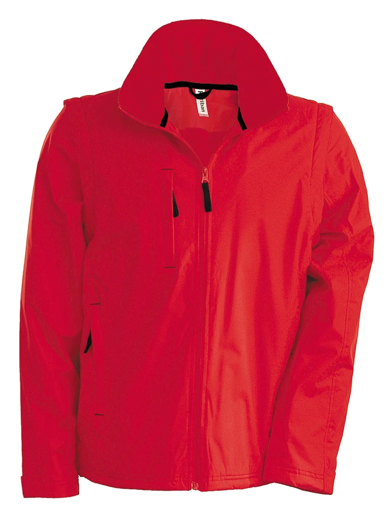 100 % Polyester with PVC coating. Comfortable fabric. Polyester outdoor fleece lining. Polyester padding and lining. Zip through front. 3 front zip closing pockets. Detachable sleeves. Adjustable cuffs. Contrast zip pullers, inner collar tape & bartacks. Inside 2 zip closing pockets & 1 mobile phone pocket. Concealed hood. Contrast elasticated drawcord with toggles at hem. Zip access for decoration.