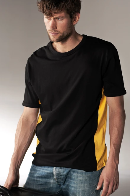 100 % Cotton. Rib bound neckline and cuffs with elastane.