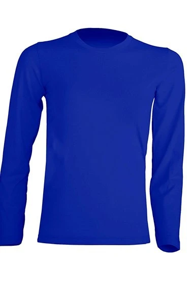 Kids long sleeve T-shirt. Side seams on body. Lycra rib neck. Double stitch on collar, sleeves and bottom. Shoulder to shoulder tape. Grey Melange: 85% cotton / 15% polyester.