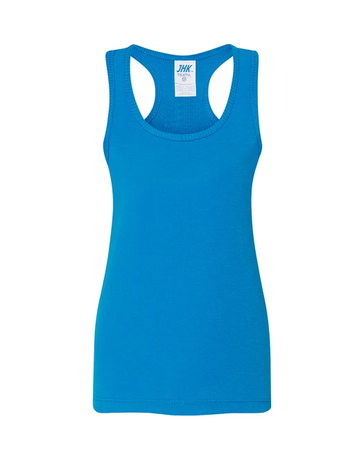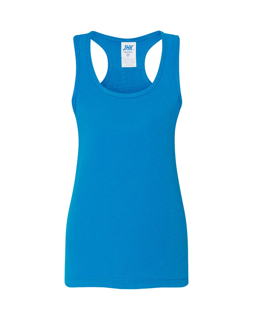 Girls tank top t-shirt swimming design with back pleat.1x1 Rib.