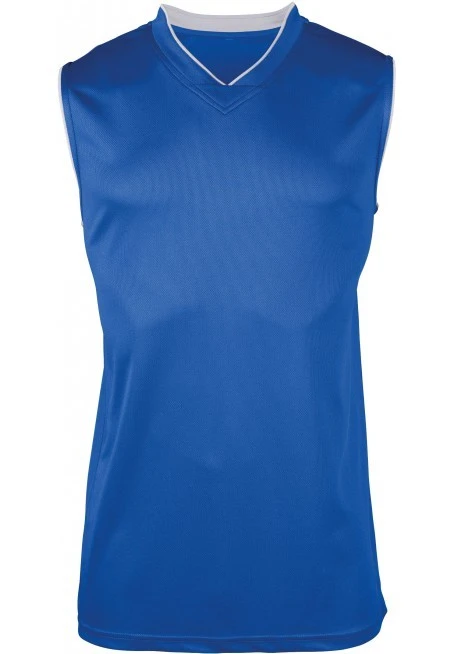 100% polyester. Quick drying fabric. V-neck. Double layer contrast self fabric at neckline and armholes. Twin needle finishing.
