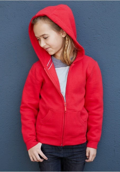 80% combed cotton / 20% polyester. Brushed fleece. Contrast neck tape (Oxford grey contrast for all colours, except for Oxford grey body where neck tape is Navy). Honeycomb lined hood. Kangaroo pocket. Ribbed pocket trim, cuffs and waistband. YKK zip.