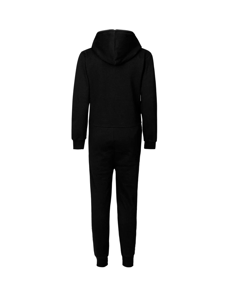 Hooded jumpsuit with kangaroo pocket and double slider YKK zipper at front. Featuring double lined hood, YKK zip pocket at side and double-layered elastane rib cuffs at both sleeves and legs. Comfortable heavyweight quality with a soft brushed inside. Made from ringspun 300gsm combed cotton.