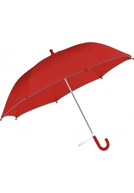 Kids' umbrella 19" (48.5 cm), polyester pongee 190T canopy, manual opening with anti-gust system and safety catch, metal pole 8 mm, fibreglass frame with safety tips, rounded polypropylene handle with ID label, reflective piping for increased visibility. Ø 85 cm