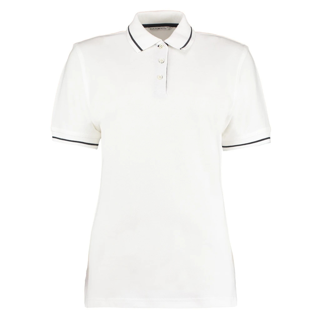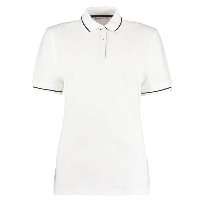 210 gsm • 100 % combed cotton pique • ribbed collar and sleeve cuffs with contrasting stripes • neckband in contrasting colour • locker patch at backneck • 3-button placket in contrasting colour • straight hem • side vents reinforced with herringbone tape in contrasting colour • all with double seams.