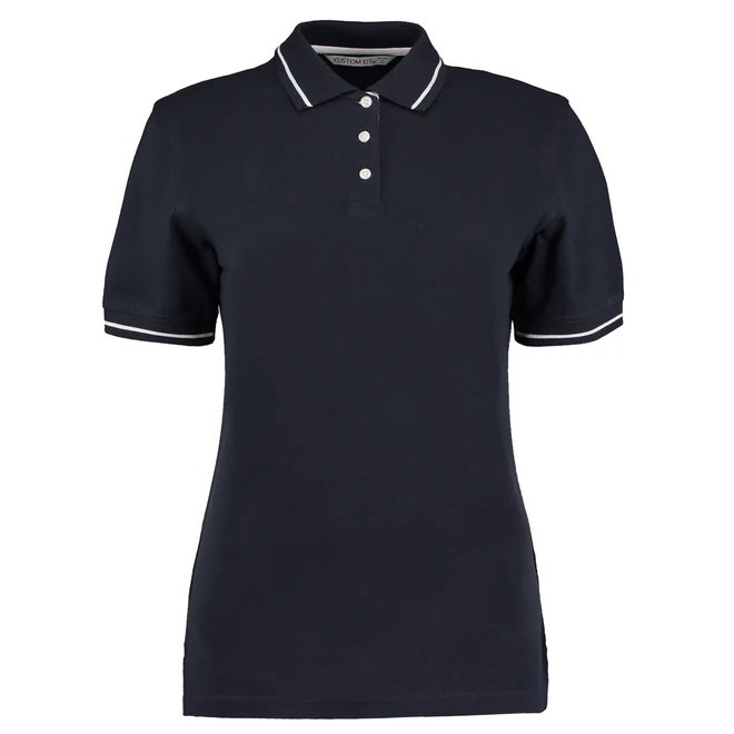 210 gsm • 100 % combed cotton pique • ribbed collar and sleeve cuffs with contrasting stripes • neckband in contrasting colour • locker patch at backneck • 3-button placket in contrasting colour • straight hem • side vents reinforced with herringbone tape in contrasting colour • all with double seams.