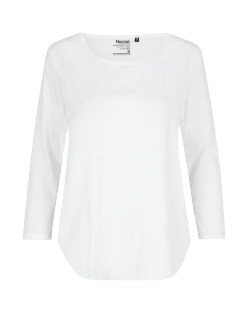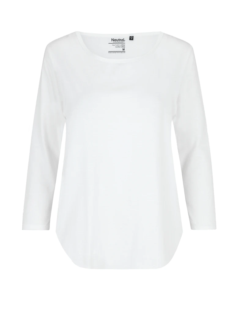 Material: 100% Organic Fairtrade Cotton, Single Jersey Knit; Weight: 155gsm; Loose fit, curved hem. Three quarter sleeves. Round scoop neck. Double-layered neckband. Ringspun combed cotton; Certificates: OEKO-TEX® STANDARD 100, 100% CERTIFIED ORGANIC COTTON, FAIR WEAR, EU ECOLABEL, SA8000, NEUTRAL® RESPONSIBILITY