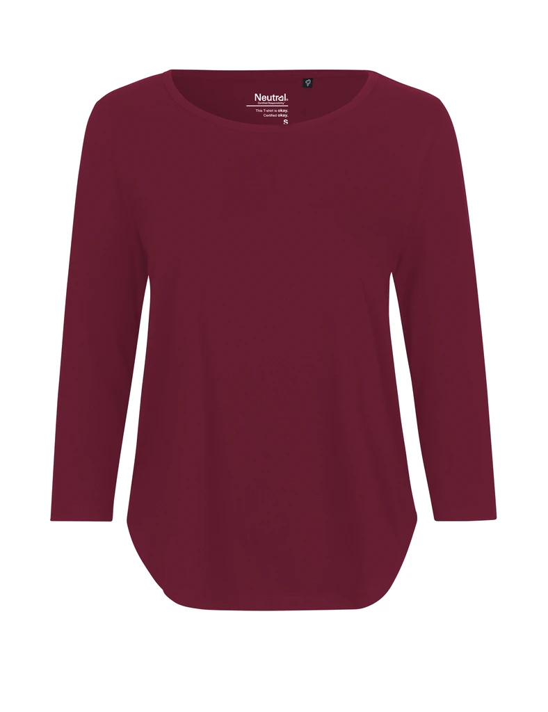 Material: 100% Organic Fairtrade Cotton, Single Jersey Knit; Weight: 155gsm; Loose fit, curved hem. Three quarter sleeves. Round scoop neck. Double-layered neckband. Ringspun combed cotton; Certificates: OEKO-TEX® STANDARD 100, 100% CERTIFIED ORGANIC COTTON, FAIR WEAR, EU ECOLABEL, SA8000, NEUTRAL® RESPONSIBILITY