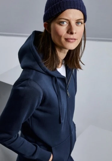 Weight: 280gsm; Material: 80% cotton, ring-spun and combed, 20% polyester;100% cotton face yarn (3-thread-construction); Double layered hood, Flat, chunky drawcords and buttonhole eyelets, Herringbone neck tape, Leaner arms with front facing shoulder seams, Covered YKK metal full zip (Antique Silver) for cross body decoration, MP3 earphone access, 2 front pouch pockets, Coverseamed armholes, cuffs and hem, Contemporary, feminine fit; Certificates: STANDARD 100 by OEKO-TEX®; WRAP