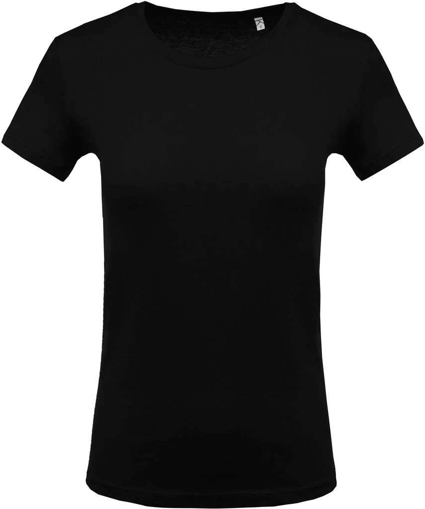 140 gsm; 100% cotton jersey (Oxford grey: 90% cotton / 10% viscose). Matching ribbed neck with elastane. Fashion slim fit. Taped neck. No brand label at neck, only size tag for easy decoration access.