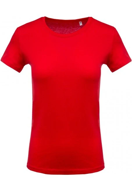 140 gsm; 100% cotton jersey (Oxford grey: 90% cotton / 10% viscose). Matching ribbed neck with elastane. Fashion slim fit. Taped neck. No brand label at neck, only size tag for easy decoration access.