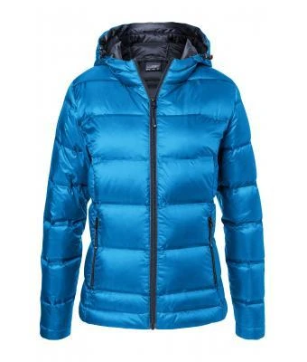 Hooded down jacket in new design, Back-stitching of the jacket is taped, not sewn