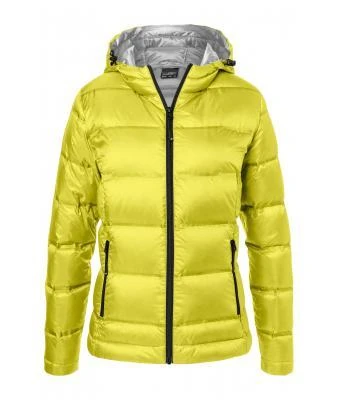 Hooded down jacket in new design, Back-stitching of the jacket is taped, not sewn