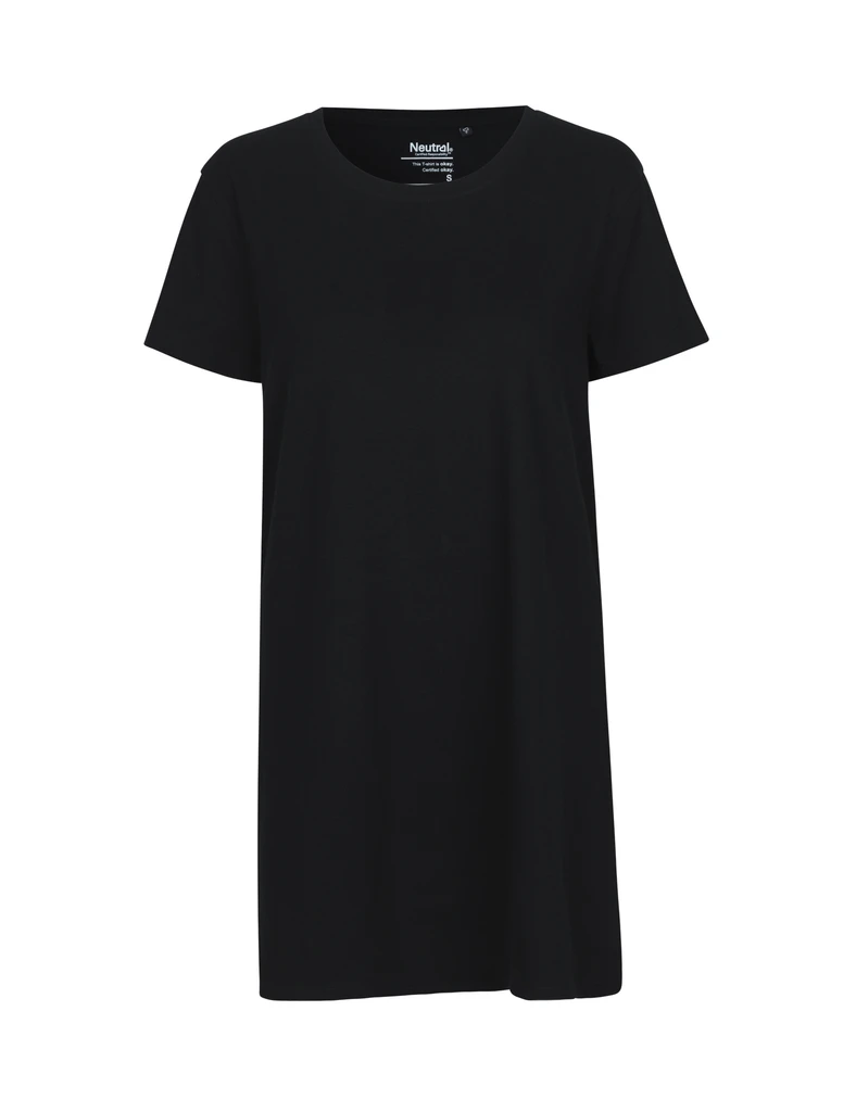 Material: 100% Organic Fairtrade Cotton, Single Jersey Knit; Weight: 155gsm; Loose fit, extra long length. Round neck, neck tape. Elastane rib knitted neckband. Ringspun combed cotton; Certificates: OEKO-TEX® STANDARD 100, 100% CERTIFIED ORGANIC COTTON, FAIR WEAR, EU ECOLABEL, SA8000, NEUTRAL® RESPONSIBILITY