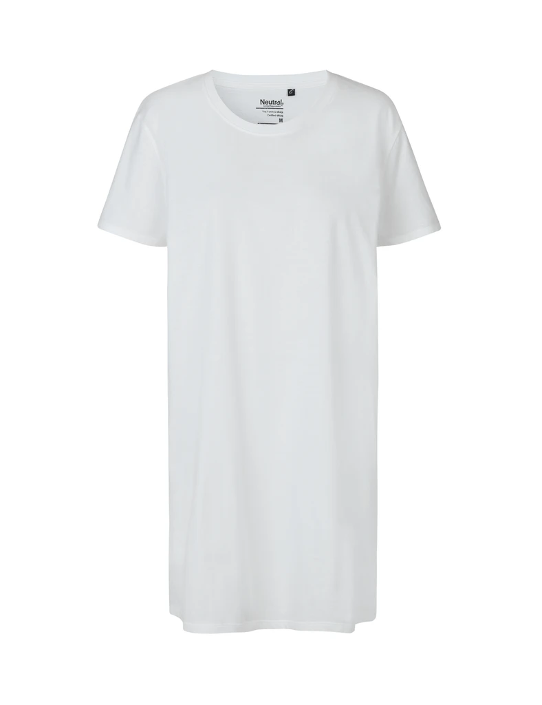 Material: 100% Organic Fairtrade Cotton, Single Jersey Knit; Weight: 155gsm; Loose fit, extra long length. Round neck, neck tape. Elastane rib knitted neckband. Ringspun combed cotton; Certificates: OEKO-TEX® STANDARD 100, 100% CERTIFIED ORGANIC COTTON, FAIR WEAR, EU ECOLABEL, SA8000, NEUTRAL® RESPONSIBILITY