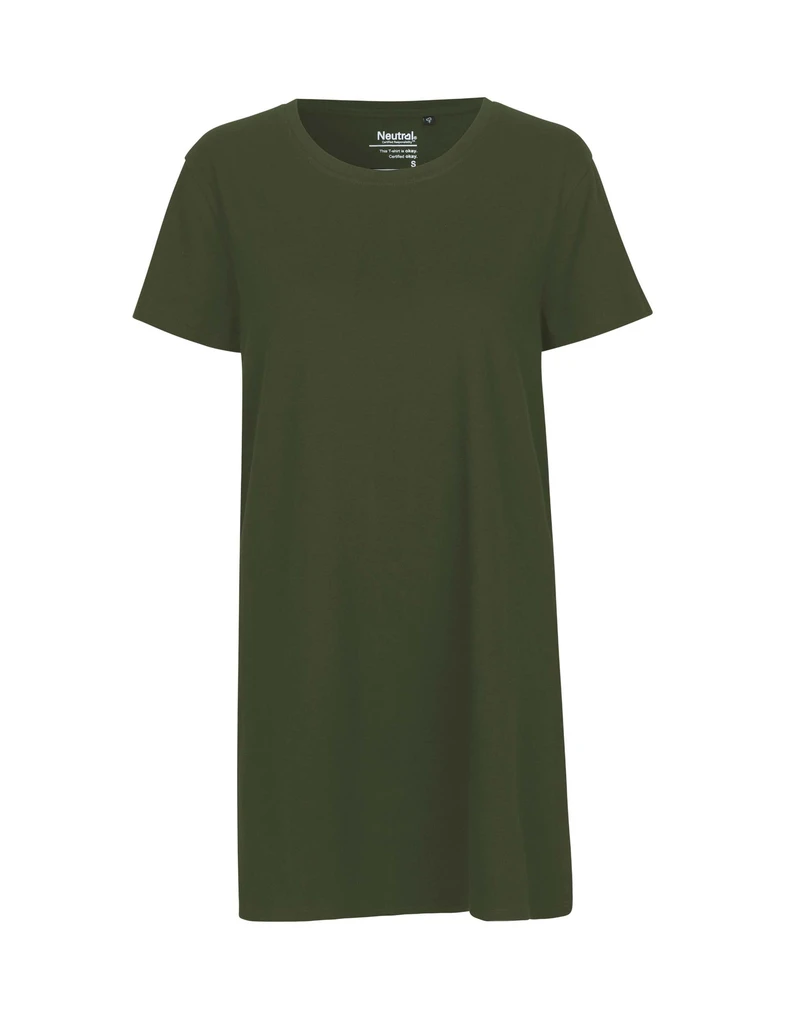 Material: 100% Organic Fairtrade Cotton, Single Jersey Knit; Weight: 155gsm; Loose fit, extra long length. Round neck, neck tape. Elastane rib knitted neckband. Ringspun combed cotton; Certificates: OEKO-TEX® STANDARD 100, 100% CERTIFIED ORGANIC COTTON, FAIR WEAR, EU ECOLABEL, SA8000, NEUTRAL® RESPONSIBILITY