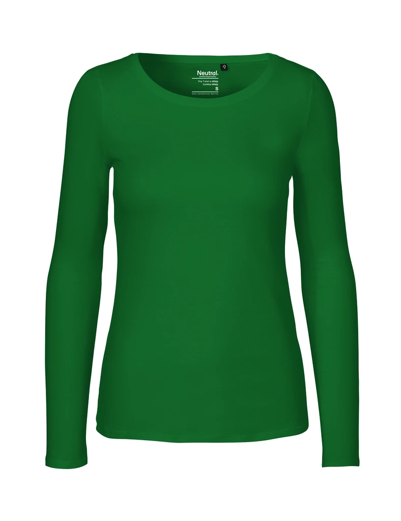 100% Organic Fairtrade Cotton, Single Jersey Knit; Weight: 155gsm; Slightly fitted at waist. Long regular sleeves. Round neck. Double-layered neckband. Ringspun combed cotton; Certificates: OEKO-TEX® STANDARD 100, 100% CERTIFIED ORGANIC COTTON, FAIR WEAR, EU ECOLABEL, SA8000, NEUTRAL® RESPONSIBILITY