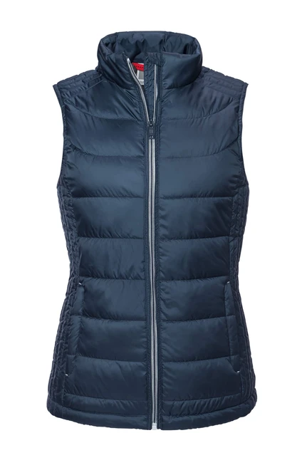 Weight: 66gsm; Material: 100% Polyester; This design is a real mixed gem and takes your corporate clothing to the next level. Regardless of the time and weather - this model is a real all-round talent and the perfect vest for your team outfit. High performance DWR fabric treated with Aquapel™ by Nanotex®. Fluorine and PFC free. Eco-effi cient padding by Dupont™ Sorona®. Stand up collar with chin guard and inner storm flap to ward off wind and draught. Contrasting zips, lining and accents for a refined look. 2 side pockets and 1 zipped inside pocket. Discreet decoration access at inner left chest. Adjustable hem with bungee cord. Certificates: STANDARD 100 by OEKO-TEX®; WRAP