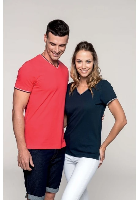 Ladies’ piqué knit V-neck t-shirt