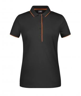 Knitted polo collar and sleeve cuffs with contrasting stripe